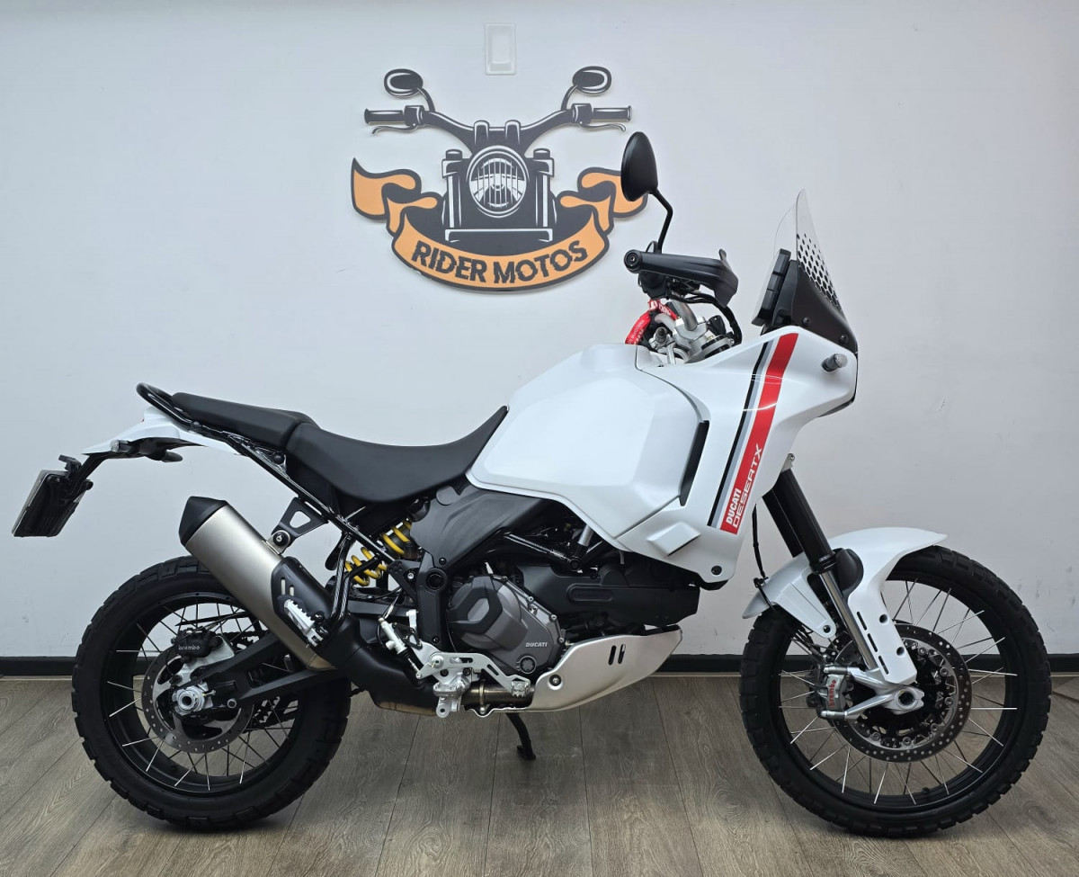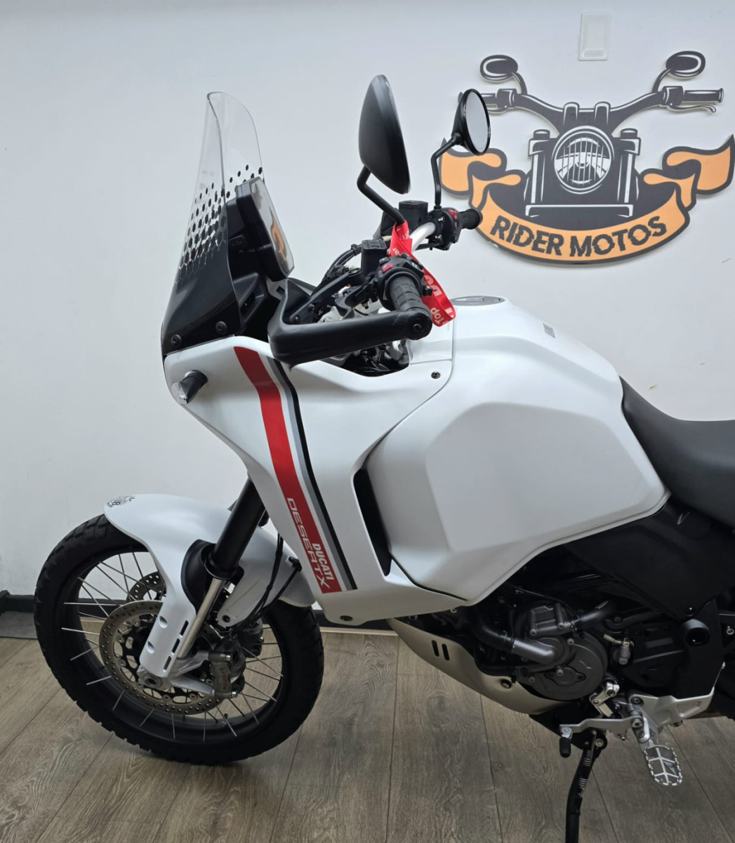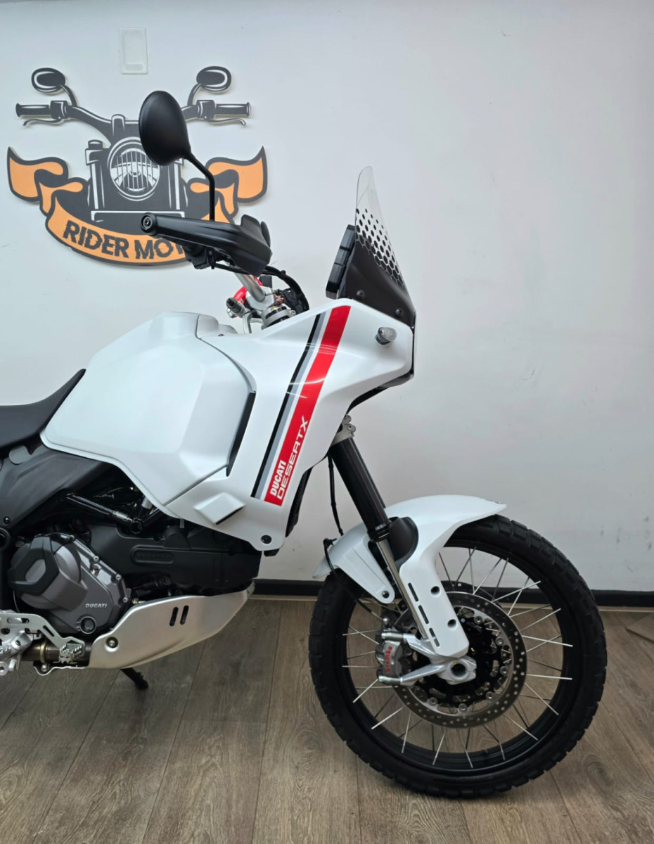 Rider Motos vende Ducati Desert X, branca, ano 2024, com apenas 1.922 Km rodados, manual e chave reserva. Moto praticamente 0 km, único dono, sem qualquer detalhe, na garantia de fábrica. IPVA 2026 PAGO. Aceitamos motos e carros na troca (carro mediante repasse para lojistas de carros parceiros comerciais), financiamos em até 48 parcelas, e aceitamos cartões de crédito em até 21 parcelas (acima de 12 parcelas alguns cartões não aceitam) com juros da máquina e cartas de crédito. Rider Comércio de Motos Ltda Rua Barão de Mesquita, 205, Tijuca, Rio de Janeiro, RJ. Tels.: 21 2495-5483 21 98626-4182 21 99937-5483