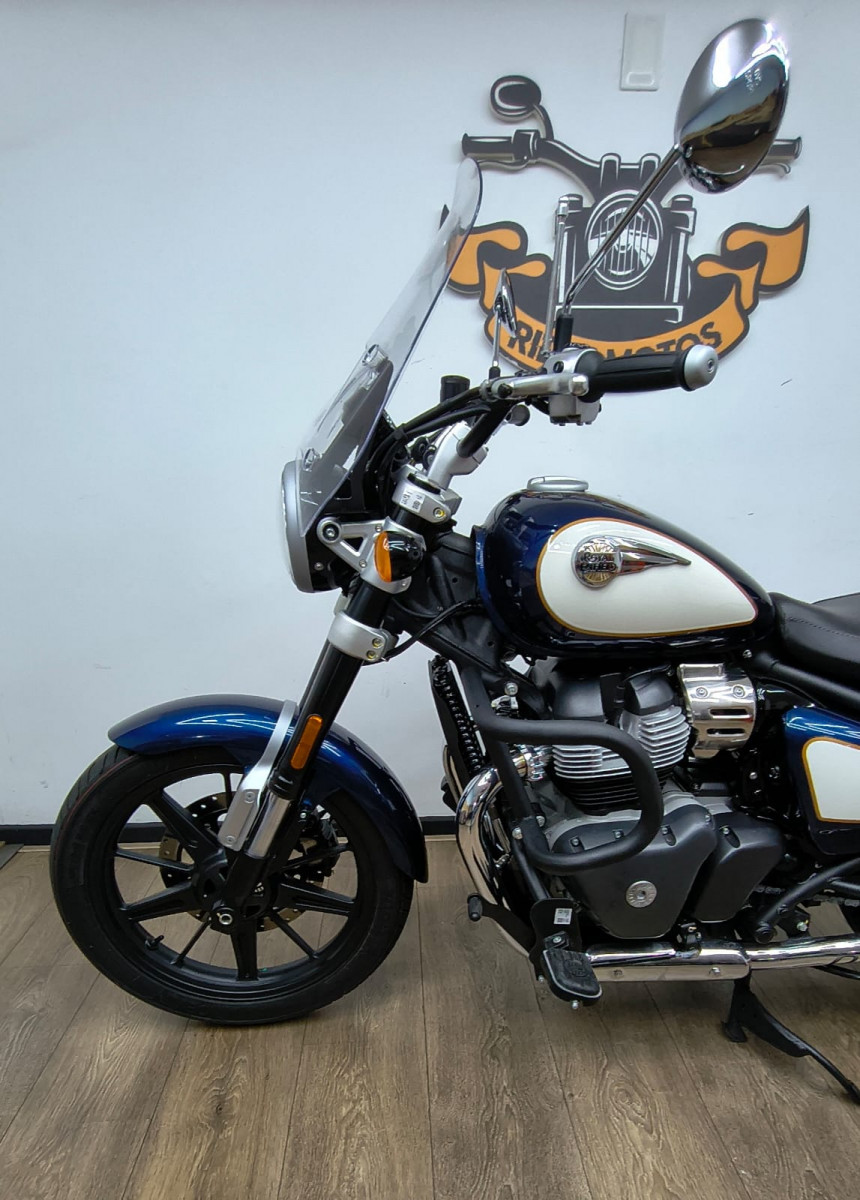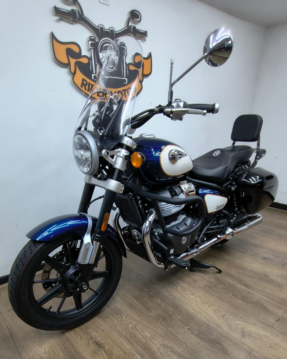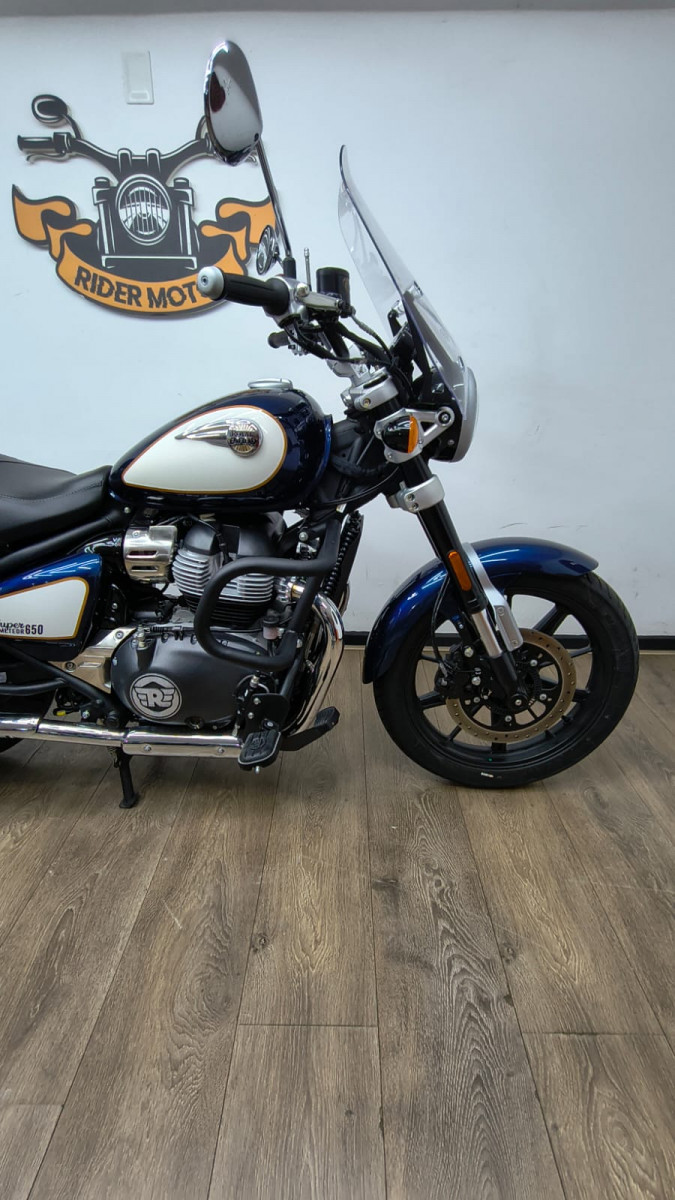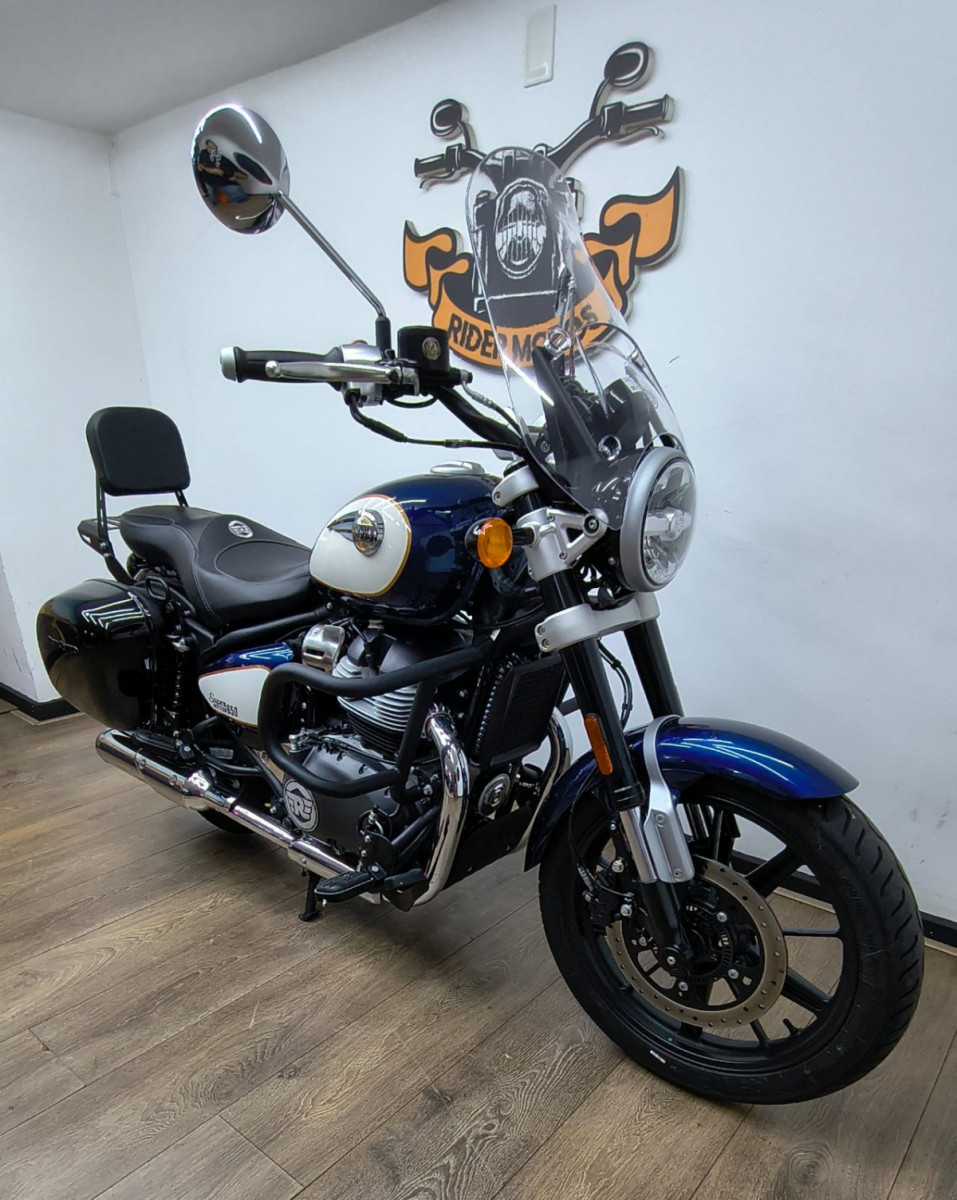 Rider Motos vende Royal Enfield Super Meteor Celestial 650cc ABS, ano 2026, cor azul, com apenas 1.089 km rodados, manual, chave reserva. Moto impecável, único dono, praticamente 0 km, com a 1ª revisão realizada na concessionária, na garantia de fábrica, emplacada e com a documentação em dia (IPVA e GRT 2026 pagos) e repleta de acessórios originais Royal Enfield, como: * Mata cachorro original * Protetor de motor * Protetor de radiador * Plataformas de piloto e garupa * Alforges laterais * Bolha e banco Confort Aceitamos motos (2020 em diante) e carros na troca (carro mediante repasse para lojistas de carros parceiros comerciais), financiamos em até 48 vezes e parcelamos no cartão de crédito em até 21 vezes com juros da máquina. Rider Comércio de Motos LTDA End.: Rua Barão de Mesquita, 205, Tijuca, Rio de Janeiro, RJ Tel/whatsapp: 21 2495-5483 21 99937-5483 21 98626-4182