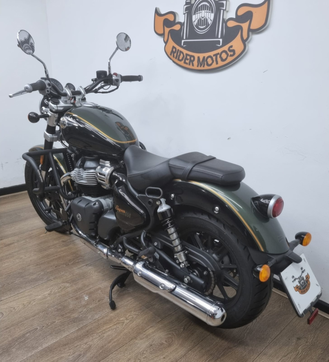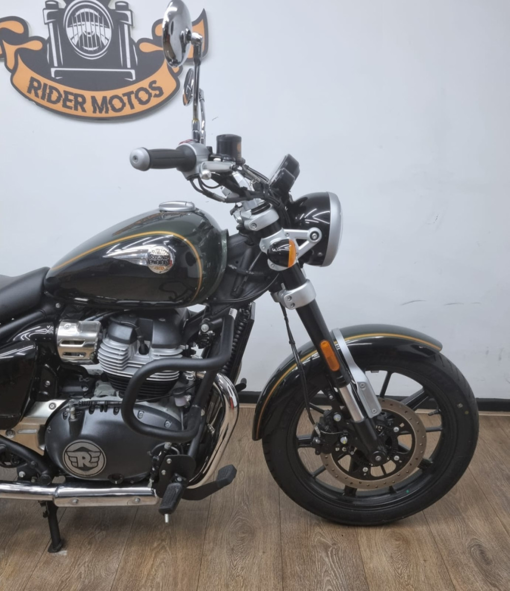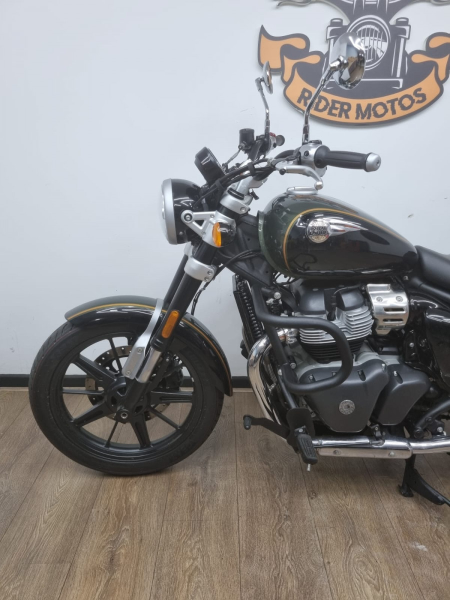 Rider Motos vende Royal Enfield Super Meteor Interstellar 650cc ABS, ano 2025, cor verde, com apenas 540 km rodados, manual, chave reserva. Único dono, revisada na concessionária e na garantia de fábrica, sem nada para fazer. IPVA 2026 PAGO! * Mata cachorro original * Protetor de motor * Protetor de radiador Aceitamos motos e carros na troca (carro mediante repasse para lojistas de carro parceiros nossos), financiamos em até 48 vezes e parcelamos no cartão de crédito em até 21 vezes com juros da máquina. Rider Comércio de Motos End.: Rua Barão de Mesquita, 205, Tijuca, Rio de Janeiro. Tel/whatsapp: 21 2495-5483 21 99937-5483 21 98626-4182