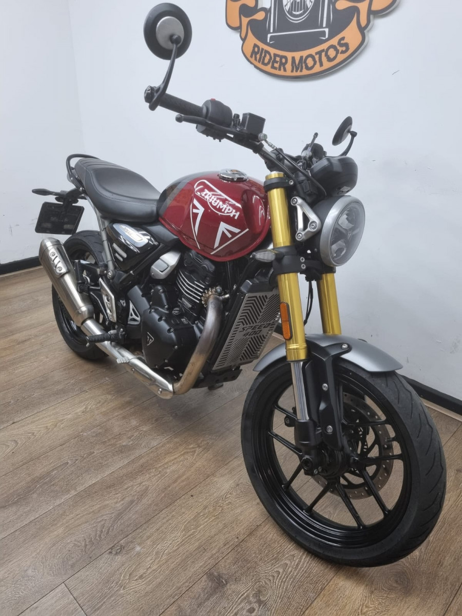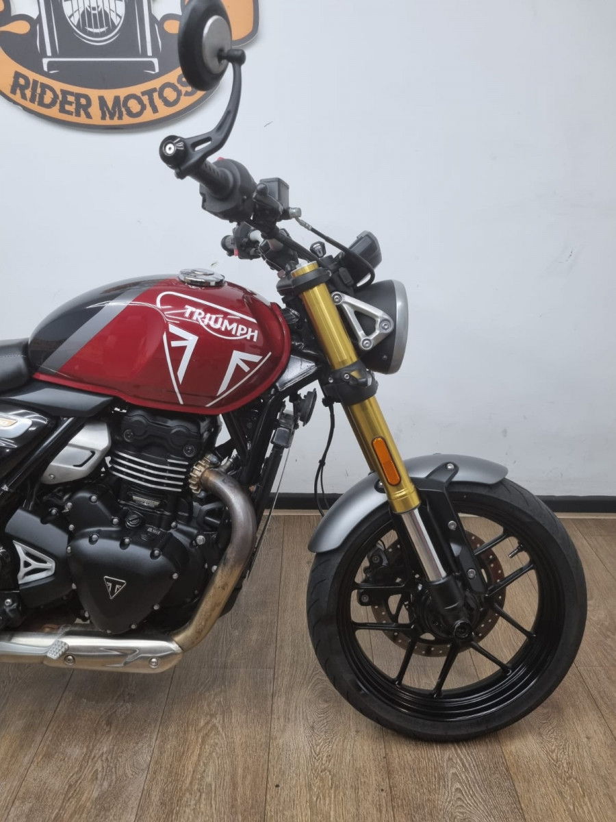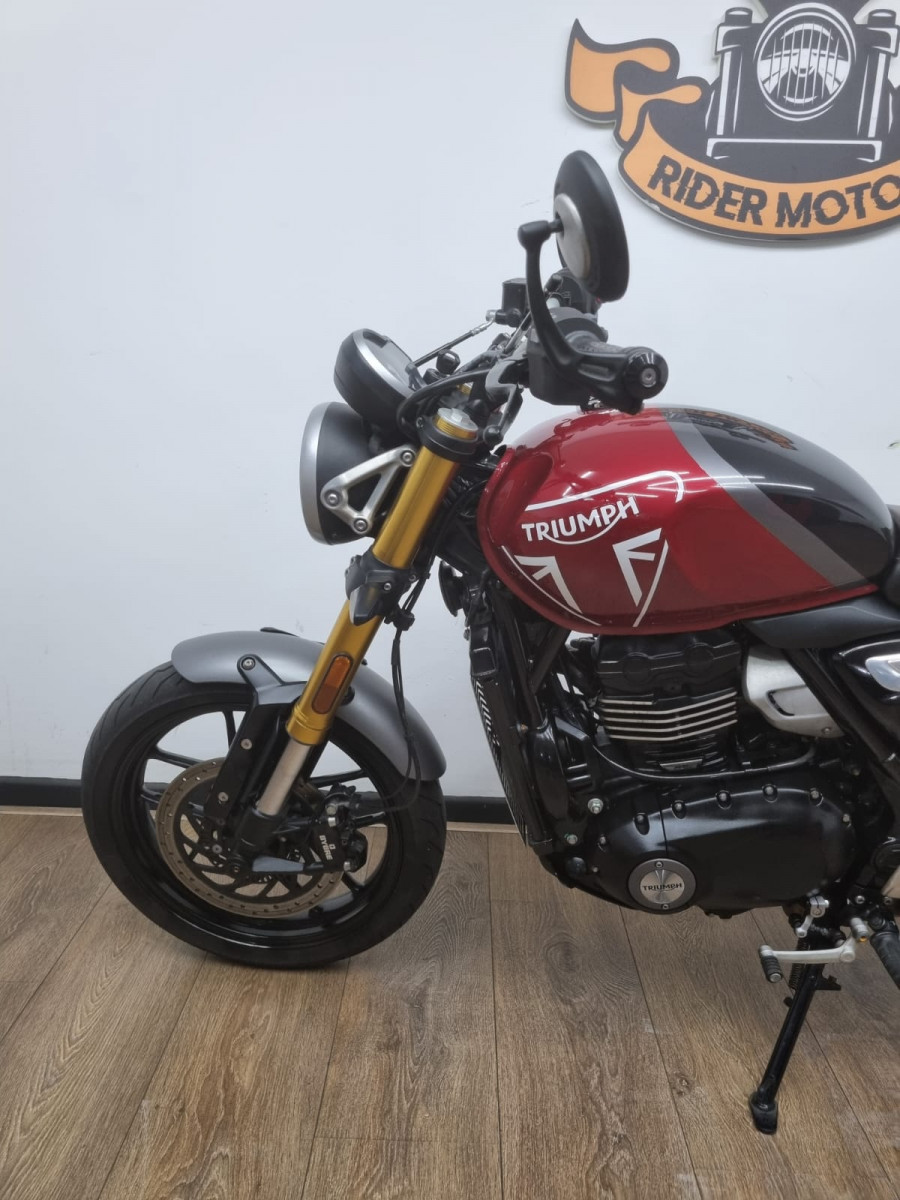 Rider Motos vende Triumph Speed 400 , cor vermelha, ano 2024, com apenas 7.332 km rodados! Moto bem cuidada, revisões em dia e garantia de fábrica. Sem detalhes, documentos ok. Manual e chave reserva. Aceitamos motos e carros na troca, financiamos e aceitamos cartões de crédito em até 21X com juros da máquina. Rider Motos Rua Barão de Mesquita, 205, Tijuca, Rio de Janeiro. Tel/whatsapp: 21 2495-5483 21 99937-5483 21 98626-4182