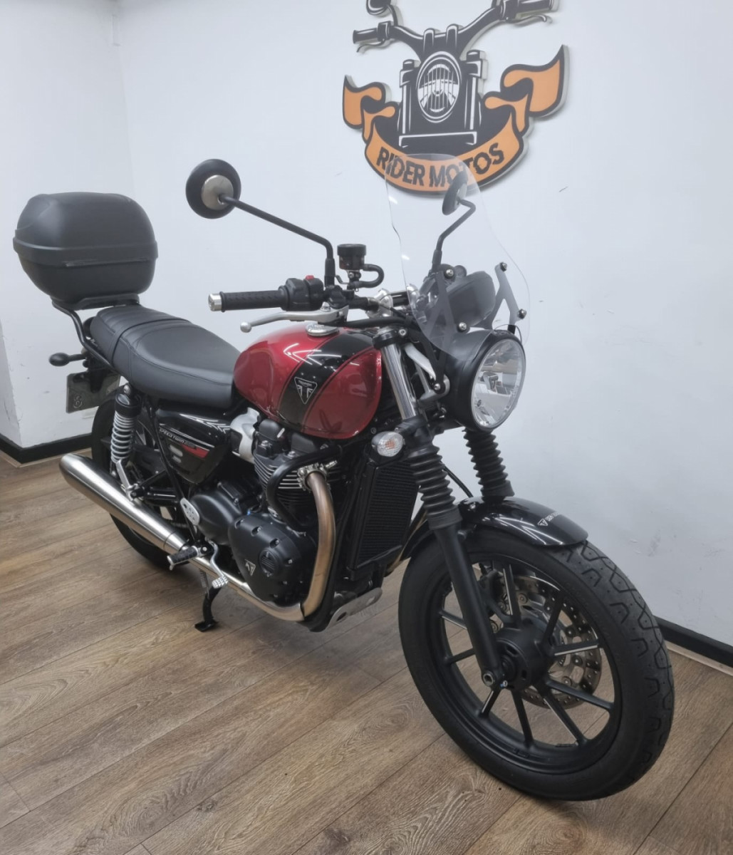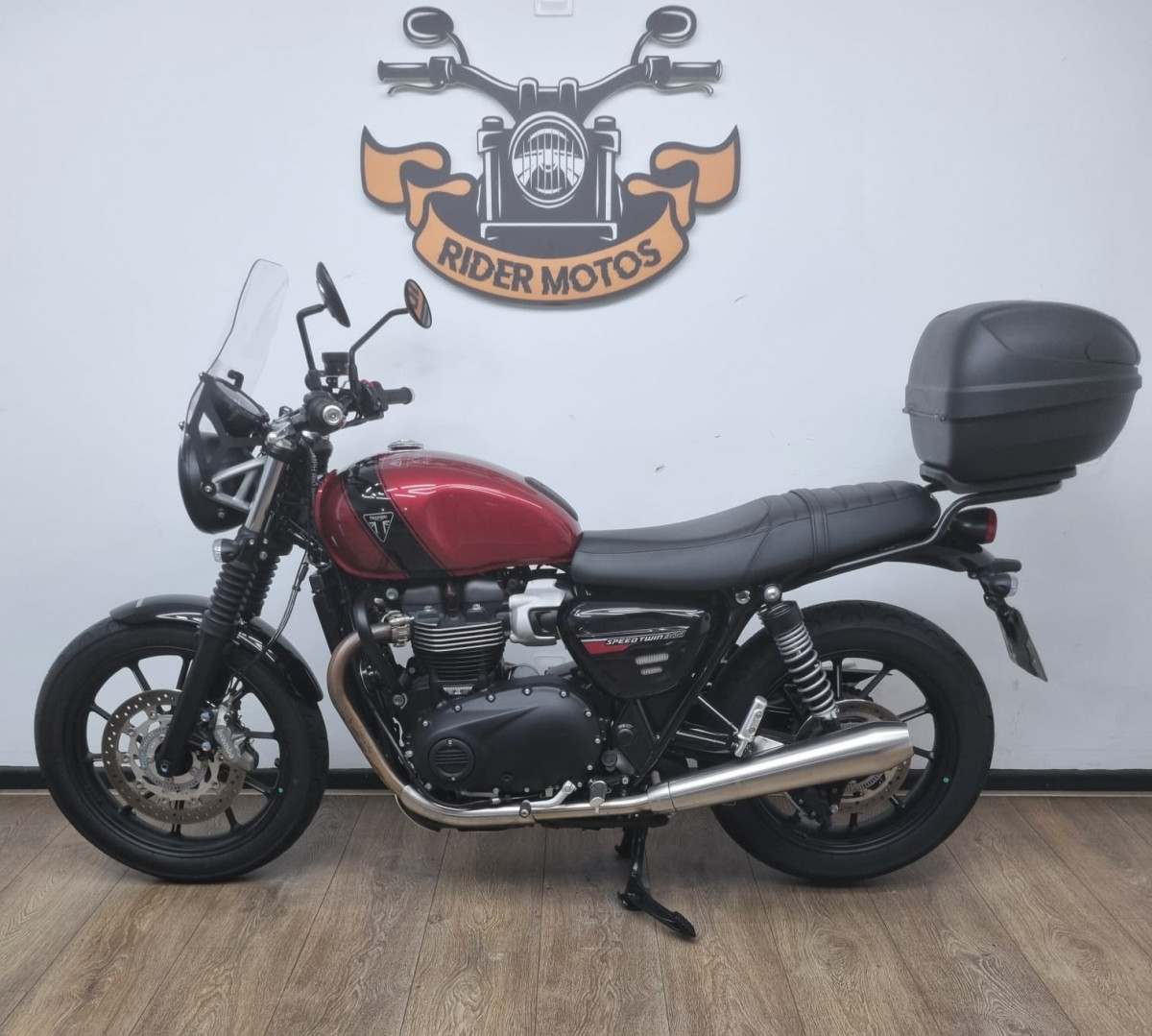 Rider Motos vende Triumph Speed Twin 900cc, ano 2024, cor vermelha, com apenas 2.123 km rodados, manual, chave reserva. GARANTIA DE FÁBRICA até setembro 2026. * Protetor de motor (mata cachorro) * Bolha * Bau original Triumph Aceitamos motos e carro na troca, financiamos em até 48 vezes e parcelamos no cartão de crédito em até 21 vezes com juros da máquina. Rider Comércio de Motos End.: Rua Barão de Mesquita, 205, Lj B, Tijuca, Rio de Janeiro. Tels/whatsapp: 21 2495-5483 21 98626-4182 21 99937-5483.